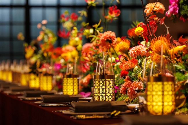 晚宴现场科勒中国30周年定制灯笼与四季概念花艺布置匠心呈现