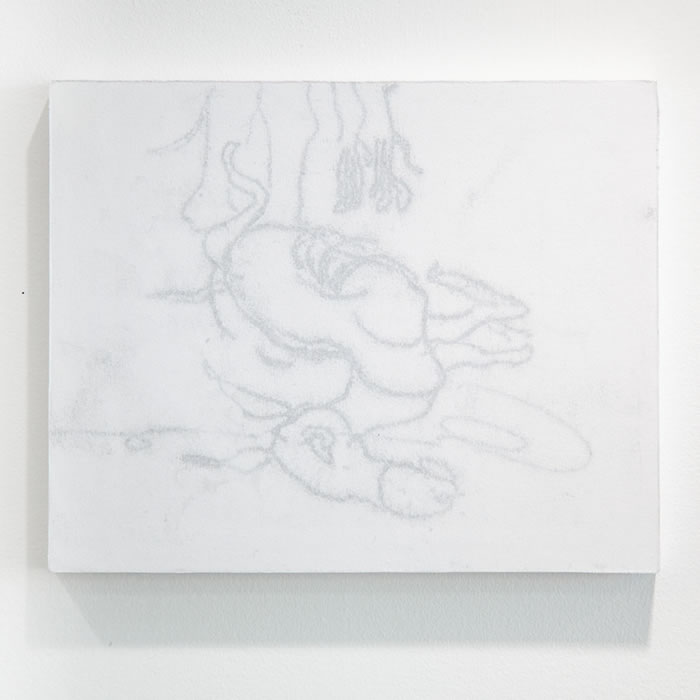 在早期作品中,我们看到“画什么”对龚若愚来说似乎还很重要,十年专业的传统训练让他能够通过绘画、拼贴甚至雕塑等多元方式满足和丰富其作品期望的叙事性。然而个展“笑点之下”却给了我们不同的面貌,驴的形象渐渐从画中隐退,抽离成纠缠的线条,图像看似隐晦,但绘画痕迹跃然成为了语言的可视觉化呈现,寓意在其间若隐若现。如果说叙事性需要具象来承载内容,那脱离叙事的桎梏,感受力表达便如同一匹脱缰的野马。同样,从受众角度,过分写实往往容易剥夺观众的感受空间,而龚若愚的新作品就如同抽丝剥茧,留给观者更多想象余地,参与到创作的延续和发展中来。